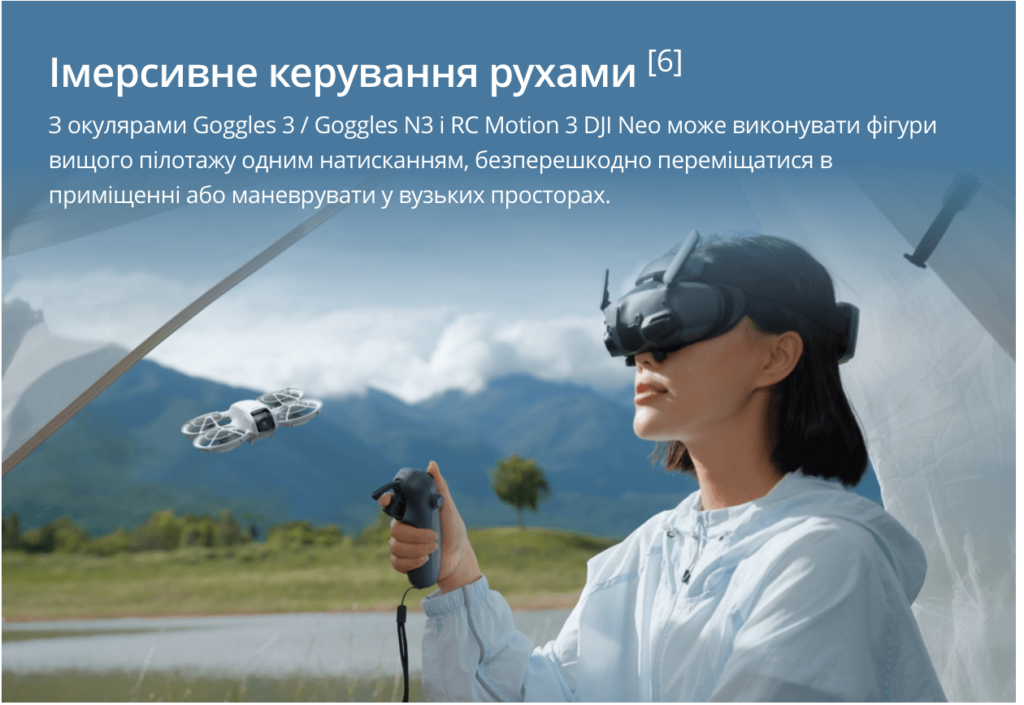 Купити найменший квадрокоптер DJI Neo в Києві та в Україні в інтернет-магазині DroneStore.com.ua – Найширший вибір дронів в Україні. Гарантія 12 місяців від виробника. Доставка Києвом та Україною.