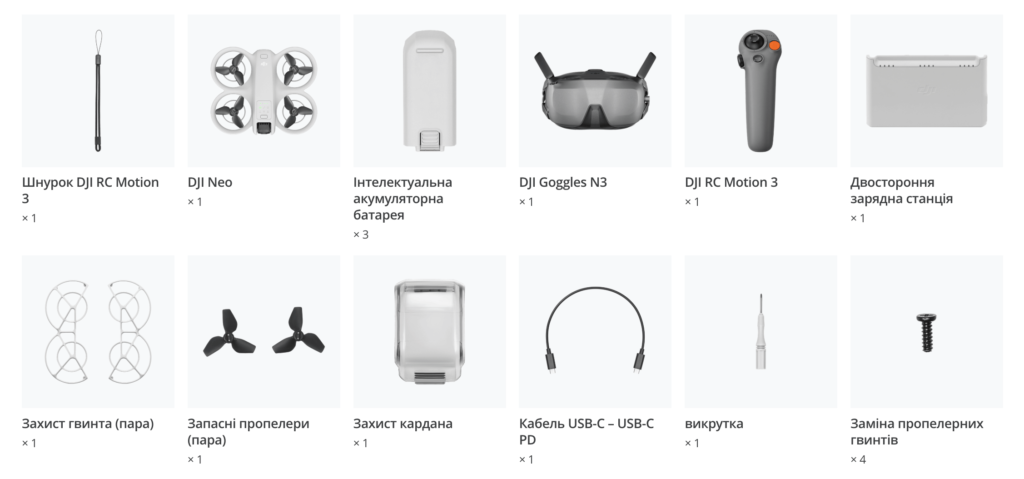 Комплект поставки квадрокоптера DJI Neo Motion Fly More Combo